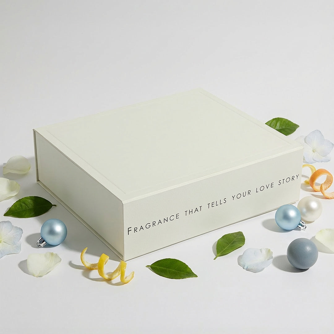 A Promise Written in Scent: Something Blue is designed for the bride or groom who treasures both tradition and new beginnings. Its luminous blend of crisp citrus, delicate florals, and refined woods reflects the promise of a love as endless as the sky—timeless, graceful, and filled with hope.